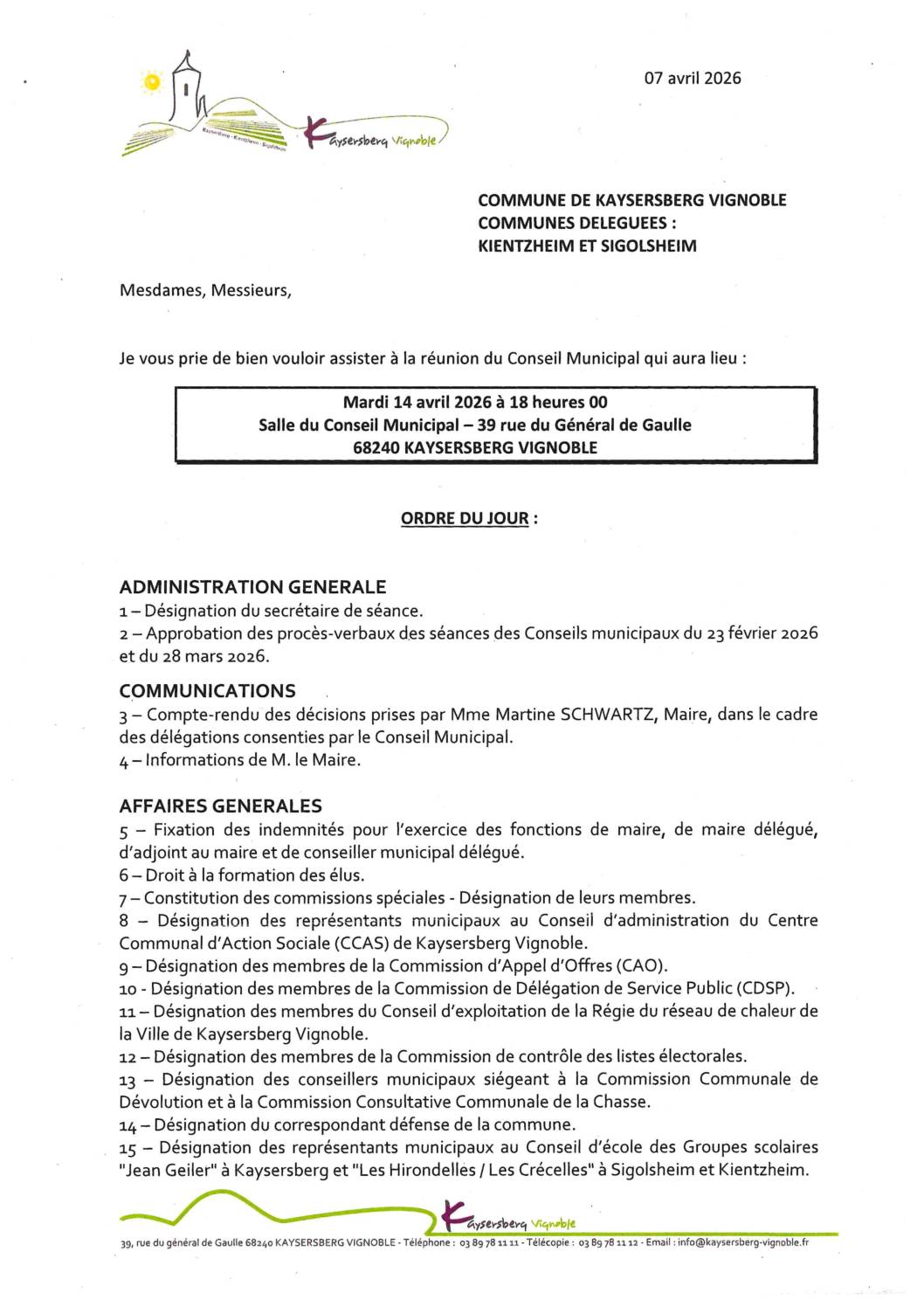 Vous souhaitez recevoir chaque semaine toute l’actualité de la commune par courriel ? Abonnez-vous gratuitement à l’infolettre de Kaysersberg Vignoble (pensez à vérifier vos indésirables si vous ne la recevez pas !)