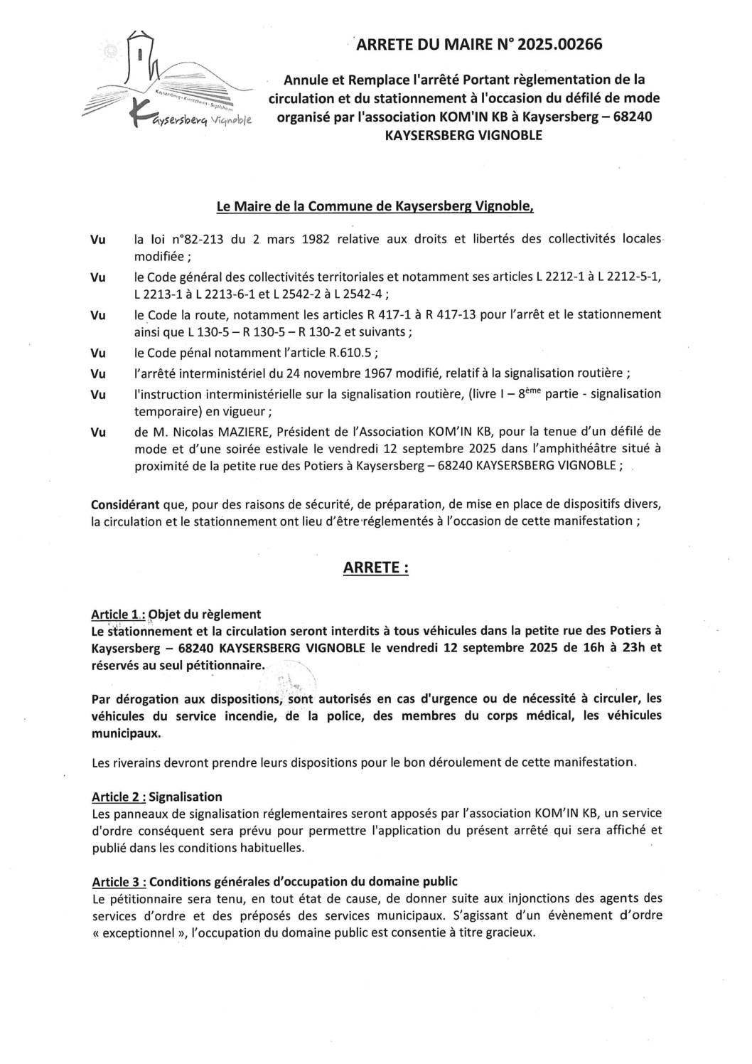 Vous êtes ici › Accueil • Tous les documents • arrete_2025_00266_defile_mode_KA