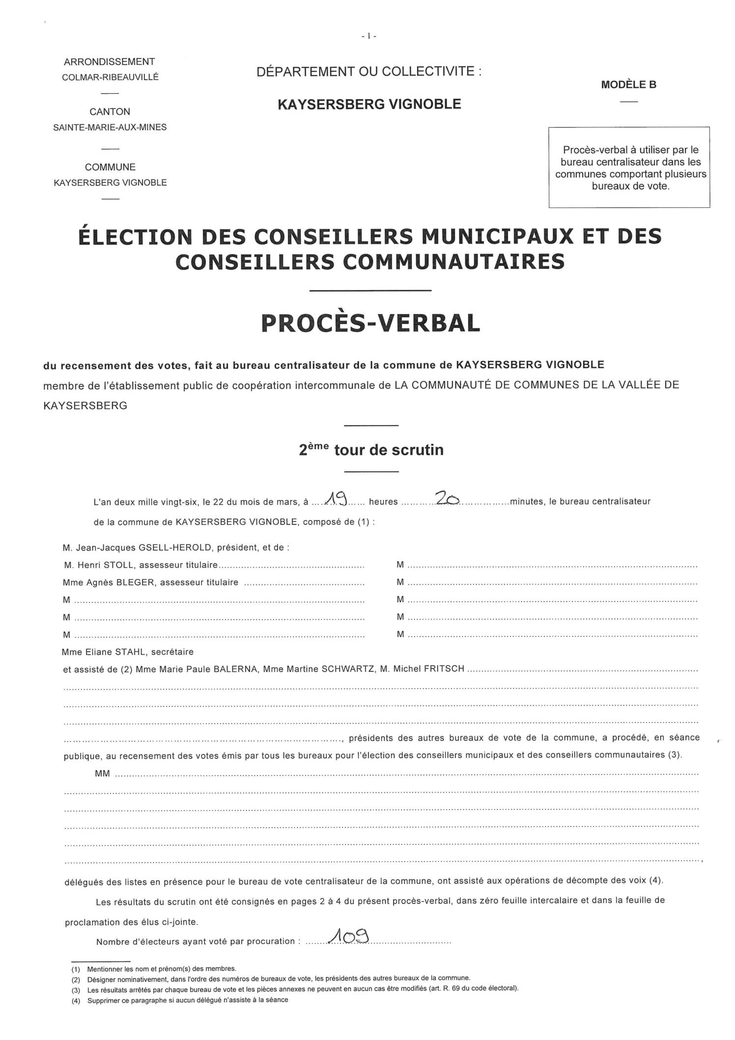 Vous êtes ici › Accueil • Tous les documents • Procès-verbal des résultats des élections municipales (2e tour)