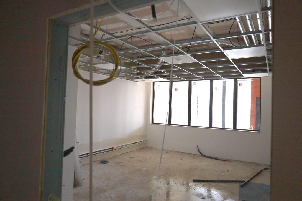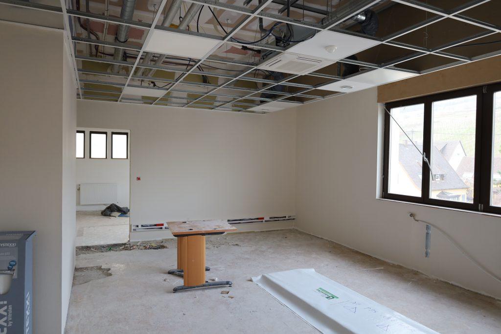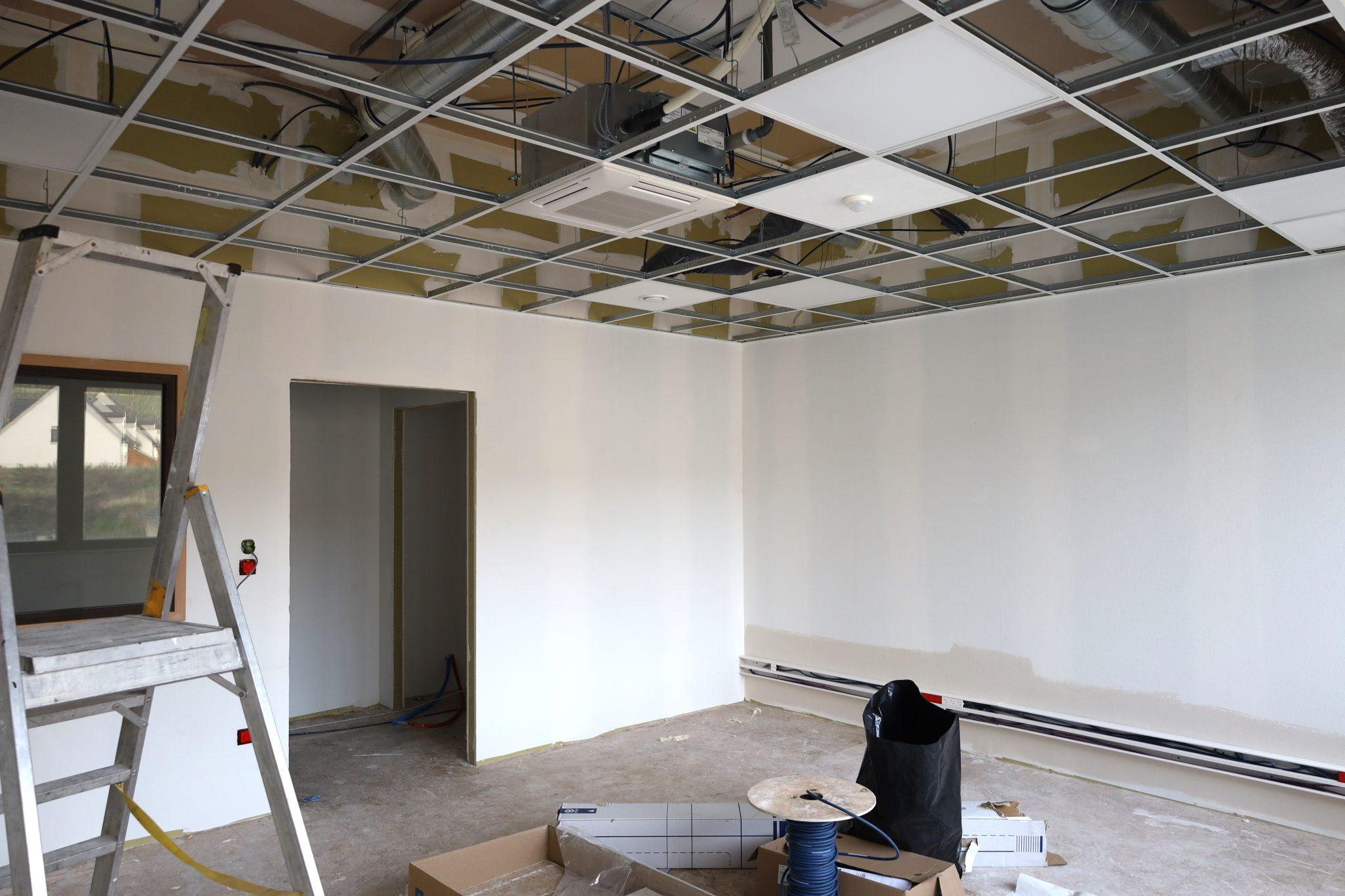 Travaux en cours au 1er étage de l’Espace Pluriel : trois grands bureaux ainsi qu’une salle de réunion seront aménagés pour l’installation définitive du SDEA, sur une surface d’environ 160 m².