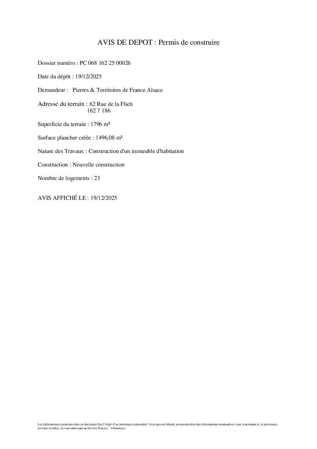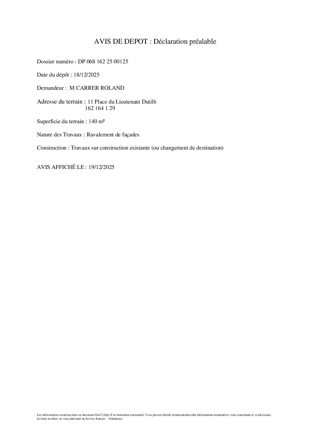 ka 68 rue du general de gaulle DP0681622500124 16 12 2025 avis depot Type : PDF Poids : 0.06 Mo 18/12/2025