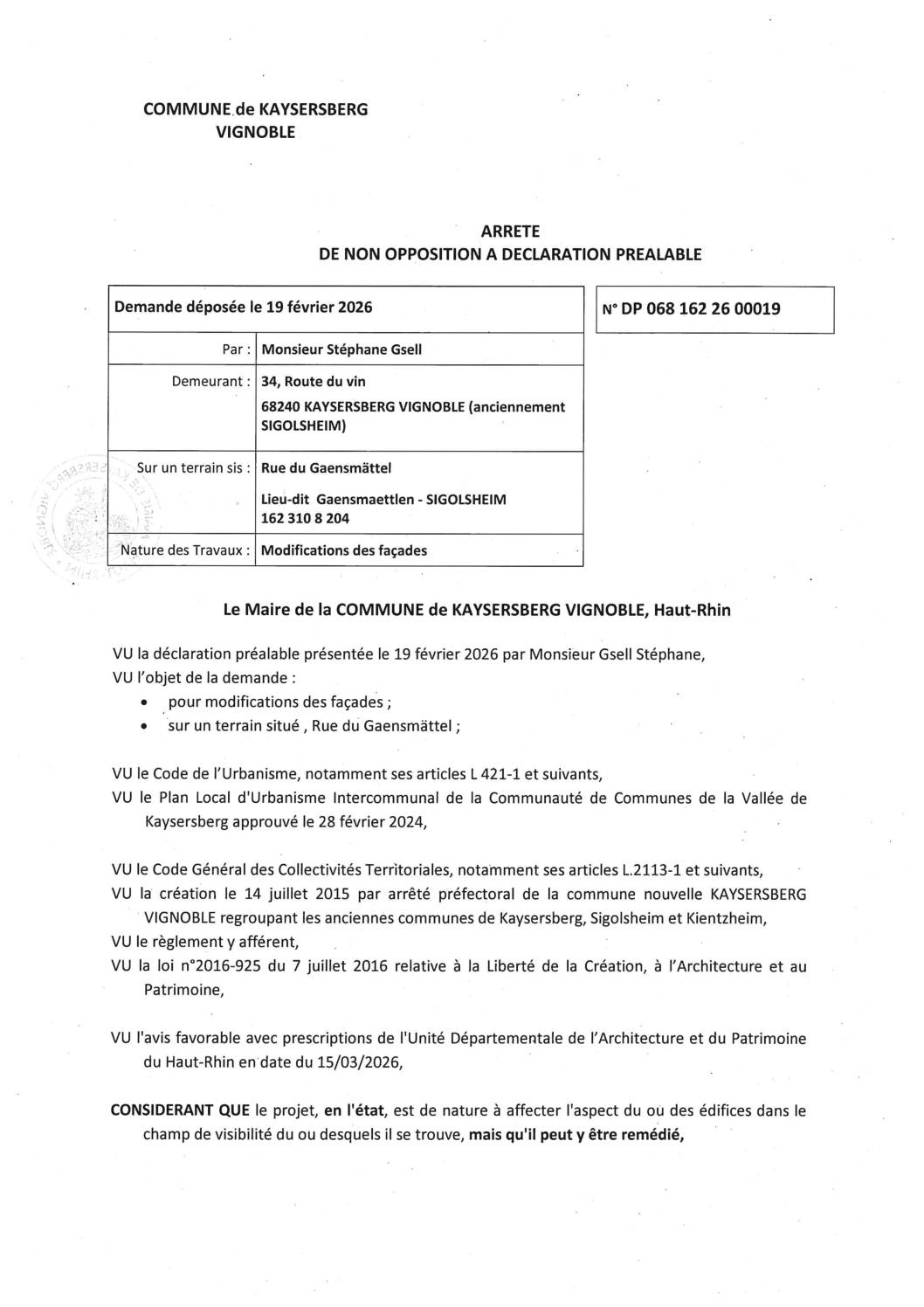 si rue du gaensmättel DP0681622600019 16 03 2026 arrete
