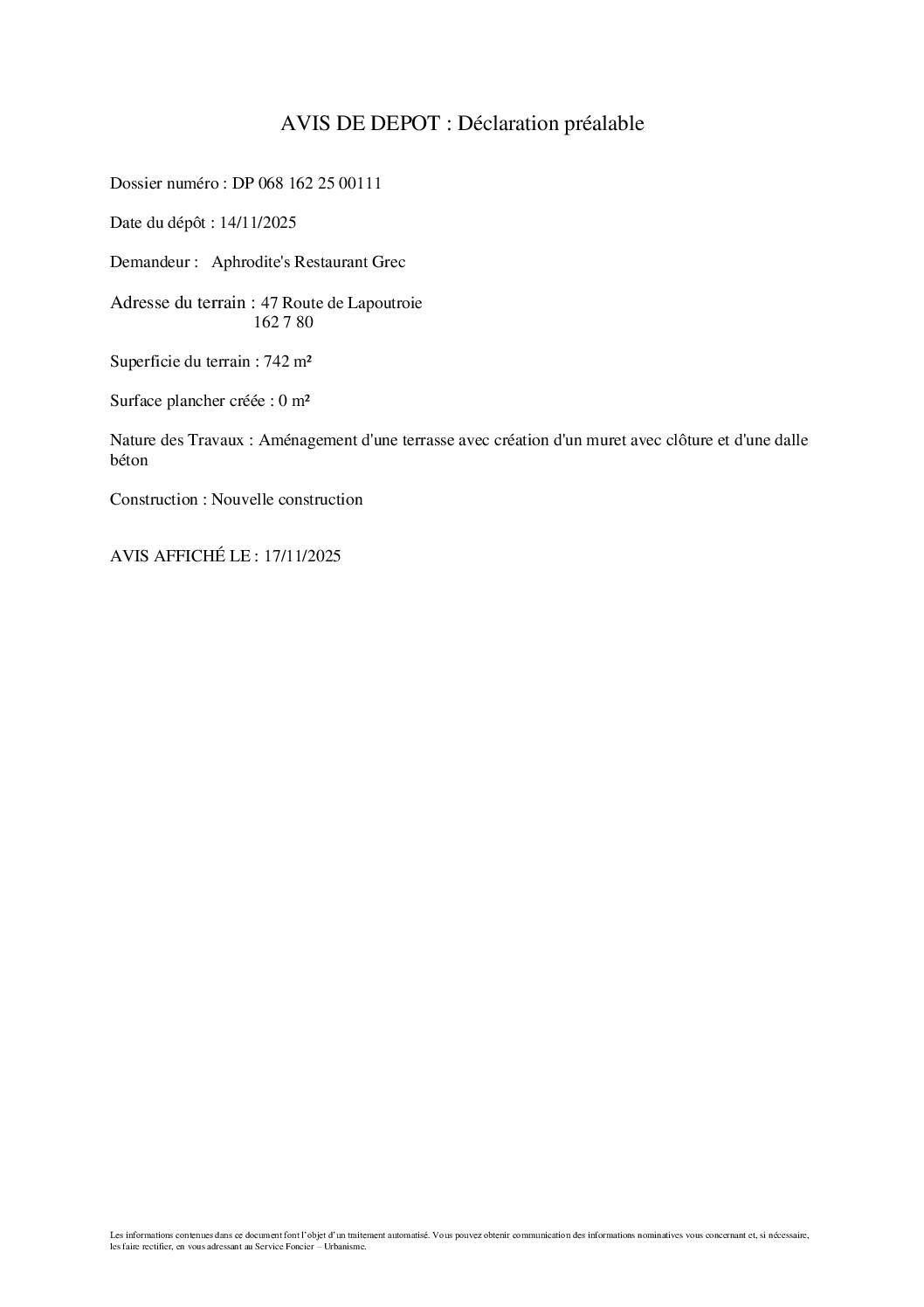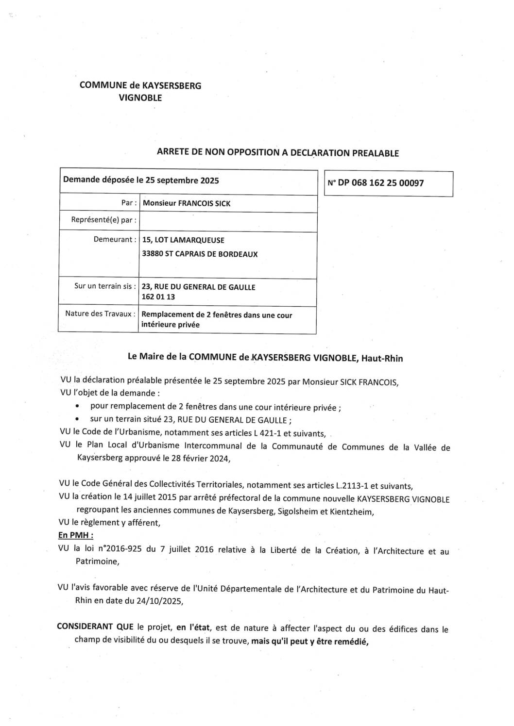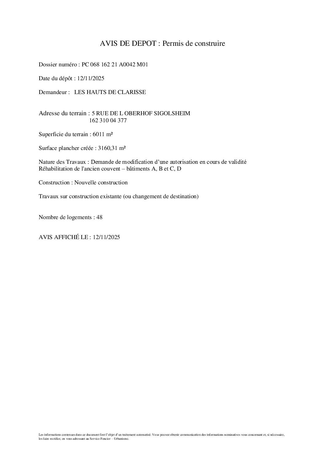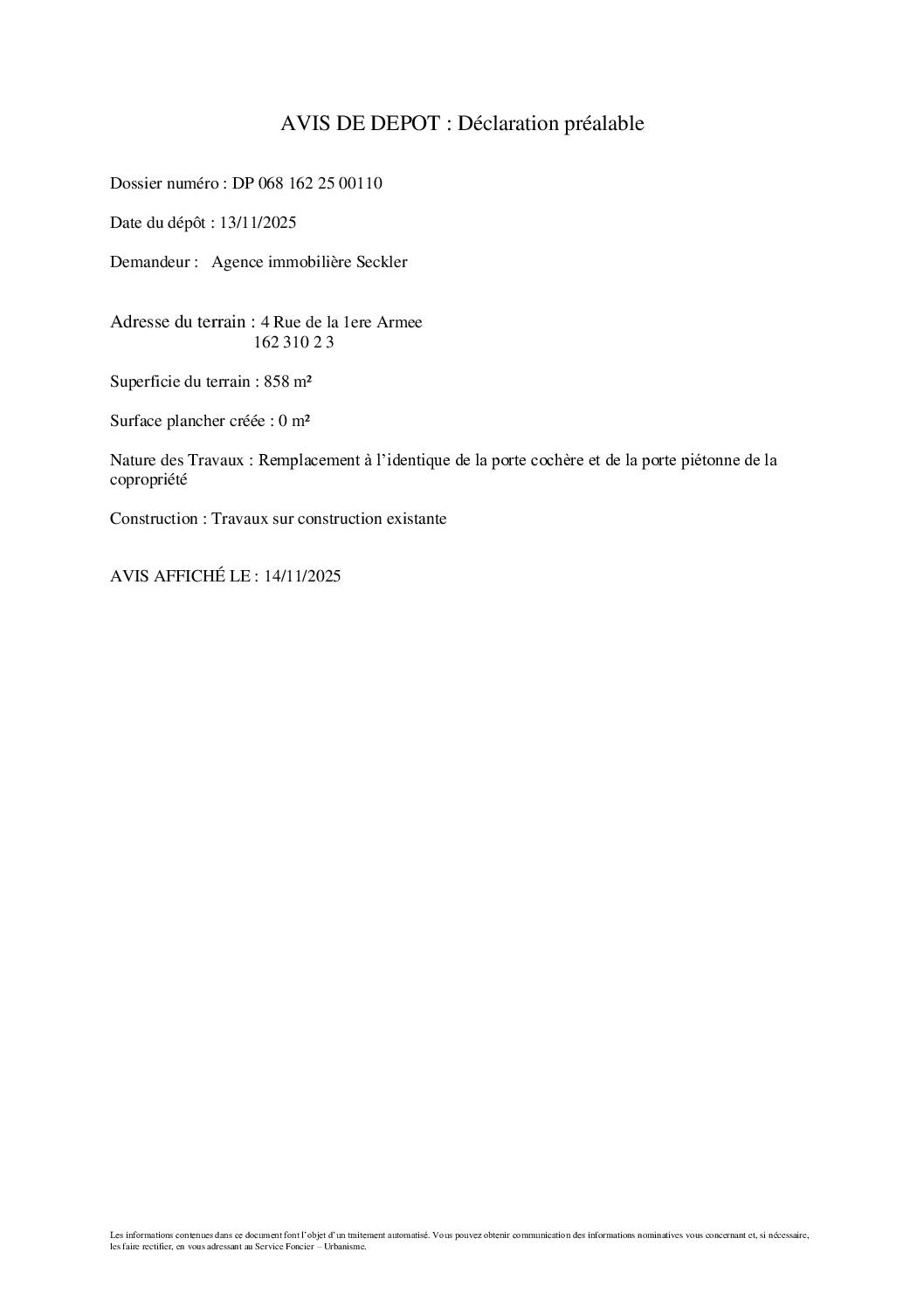 si 4 rue de la 1ere armee DP0681622500110 13 11 2025 avis depot Type : PDF Poids : 0.07 Mo 14/11/2025