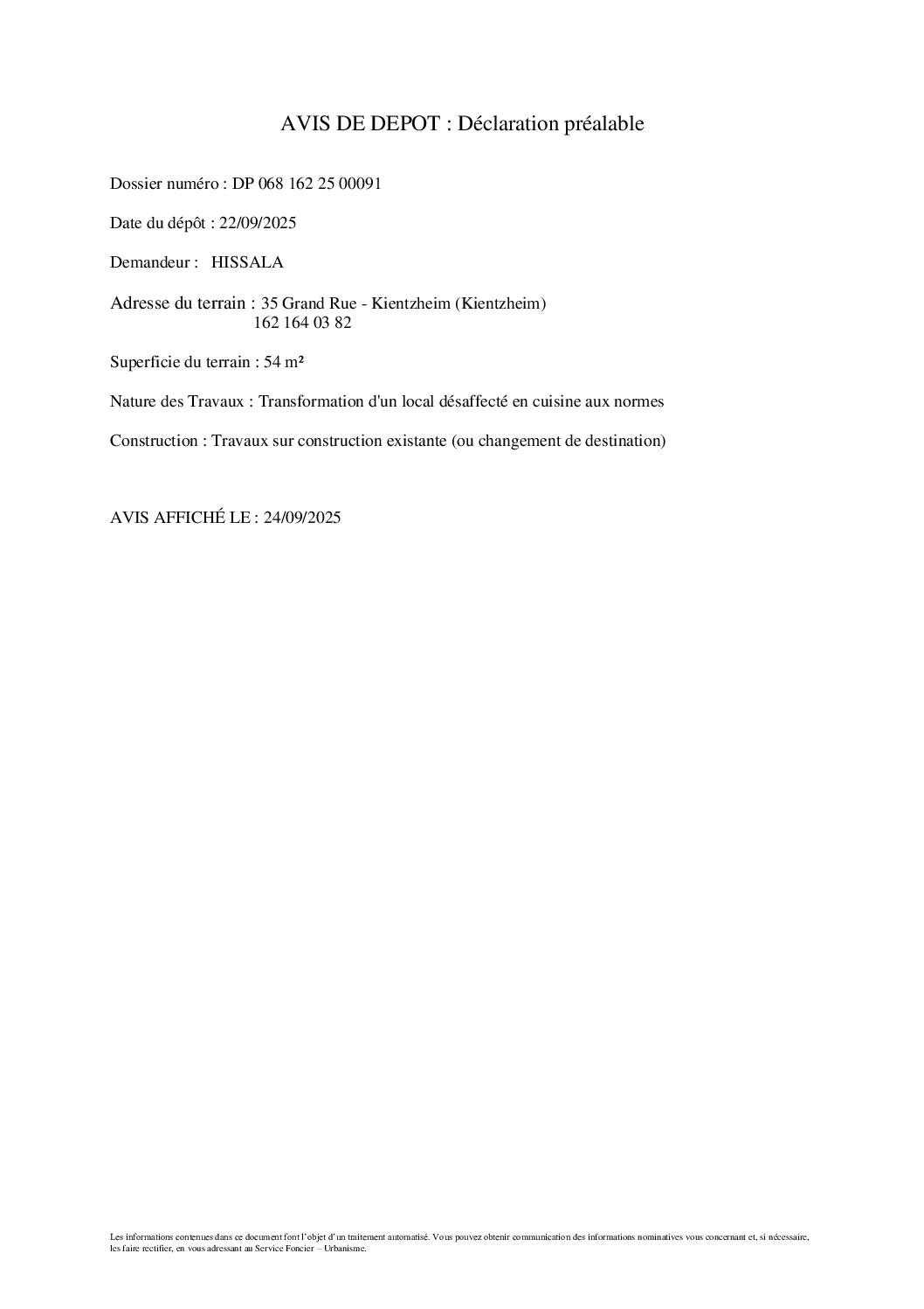 ki 35 grand rue DP0681622500091 22 09 2025 avis depot