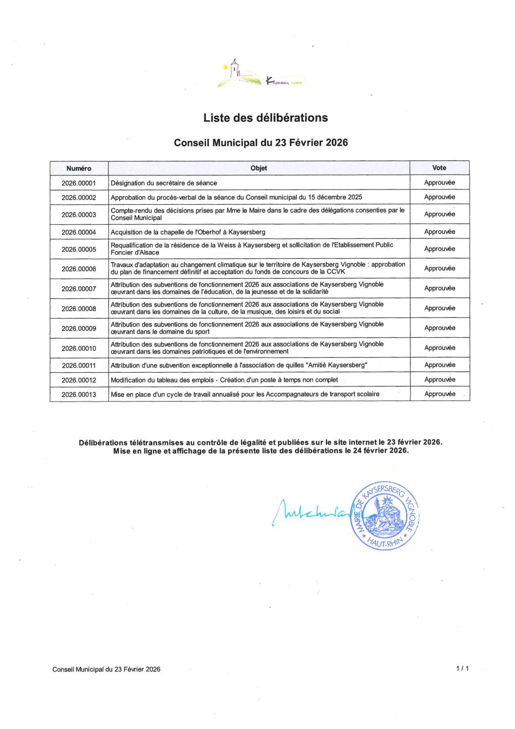 Liste des délibérations du Conseil Municipal du 23 février 2026 Type : PDF Poids : 0.41 Mo 25/02/2026