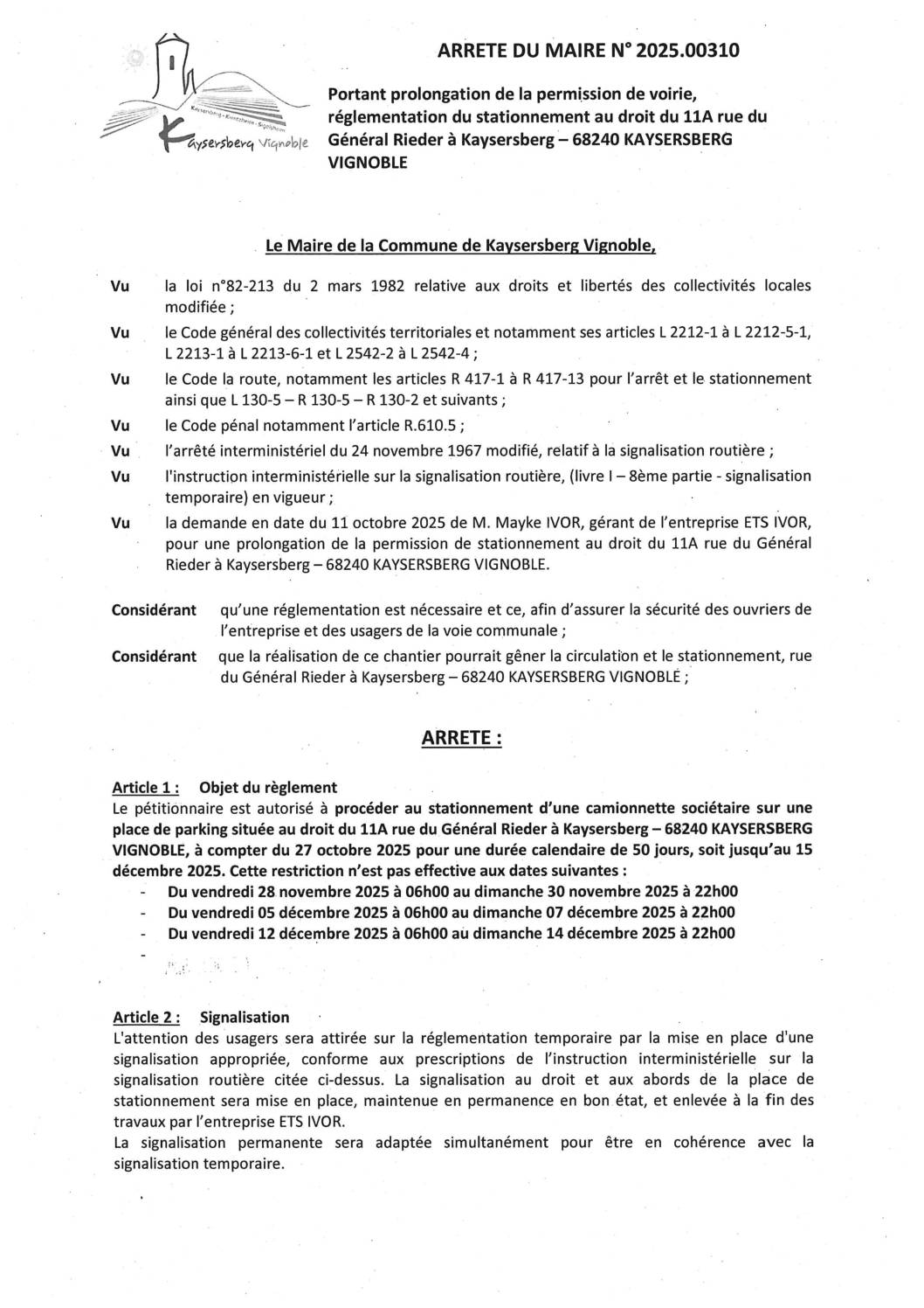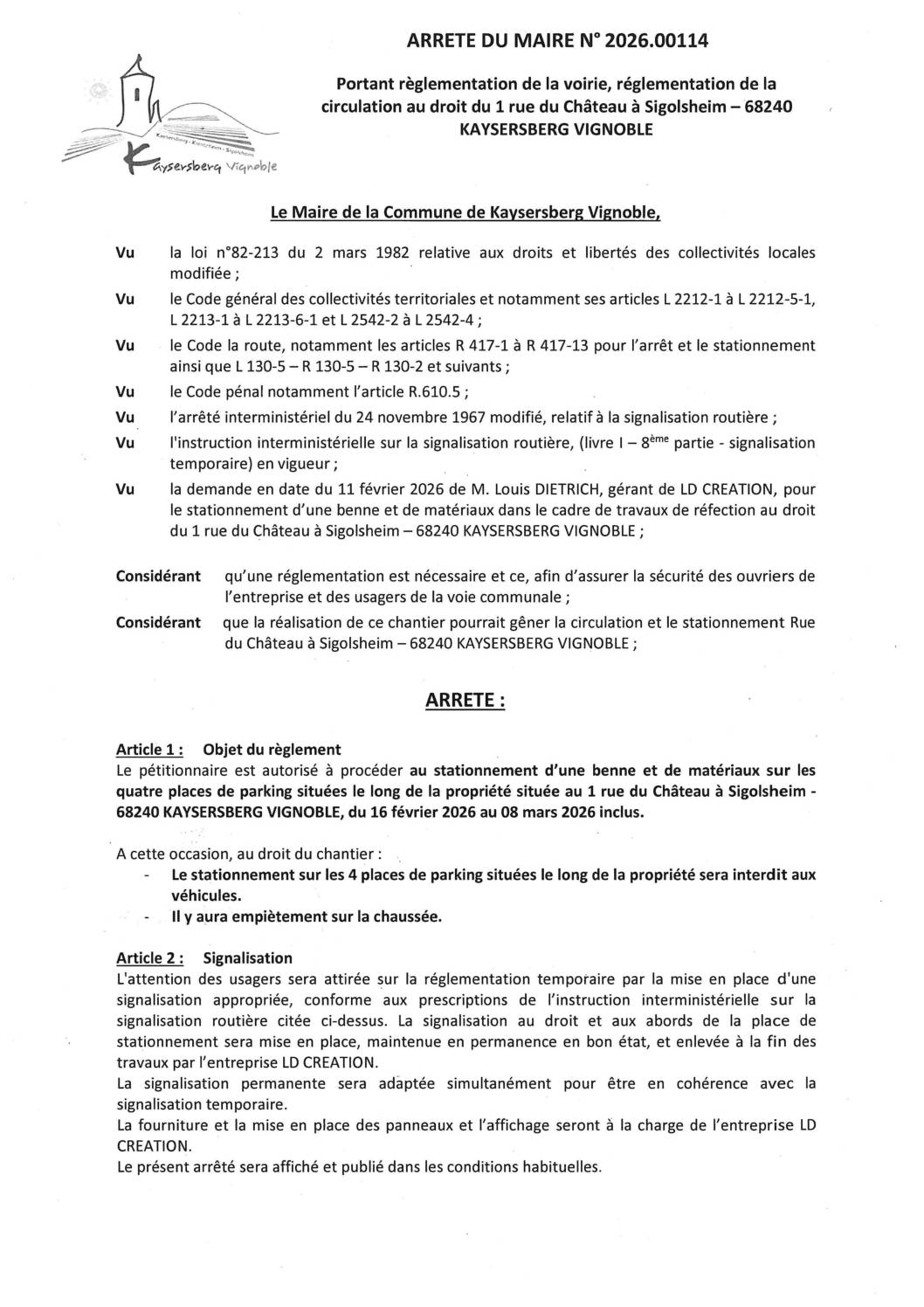 Vous êtes ici › Accueil • Vie municipale • Publications légales • Arrêtés